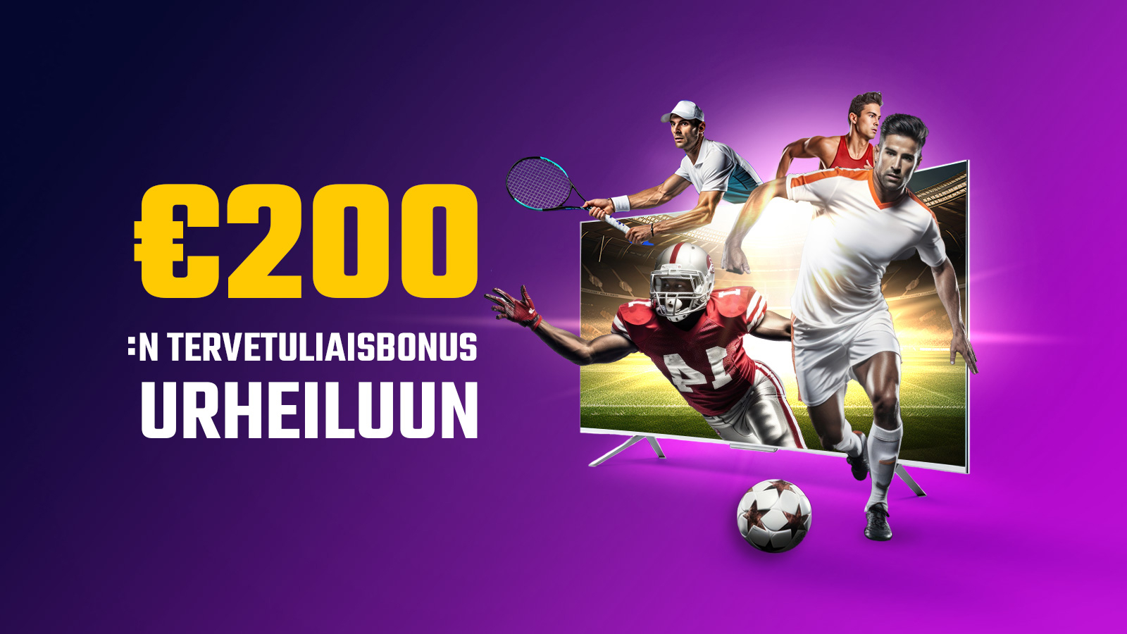 - Urheilun tervetulobonus – Lunasta urheiluvedonlyönnin bonus ja saat 100 % ensitalletuksille yli 20 €. Arvo jopa 200 €.
